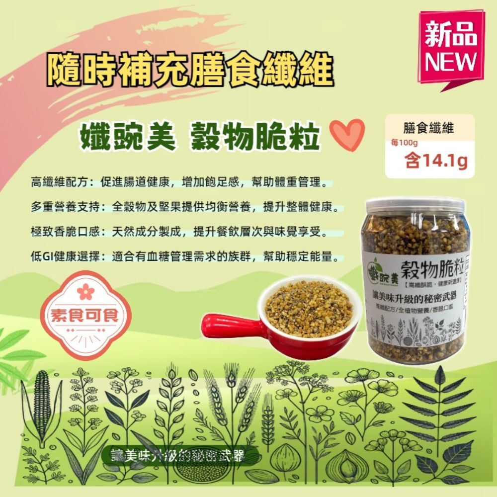 ✨只要加一匙【孅產美穀物脆粒】,立刻補滿膳食纖維!